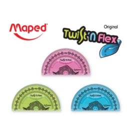 Maped Twist'n Flex Rapporteur 10cm 279810 180° – 10 cm. Plastique souple et incassable. Twist'n Flex peut se tordre à l'infini. Facile à emporter partout. Caractéristiques et détails • Rapporteur flexible à 180 degrés • 100 % résistant aux chocs : résiste à la flexion, à la torsion et aux chocs dans le sac d'école sans se casser. • Sans phtalates • 3 couleurs assorties - Bleu Vert & Rose • Sélection aléatoire des couleurs uniquement, la couleur ne peut pas être spécifiée ou demandée 👉🏻